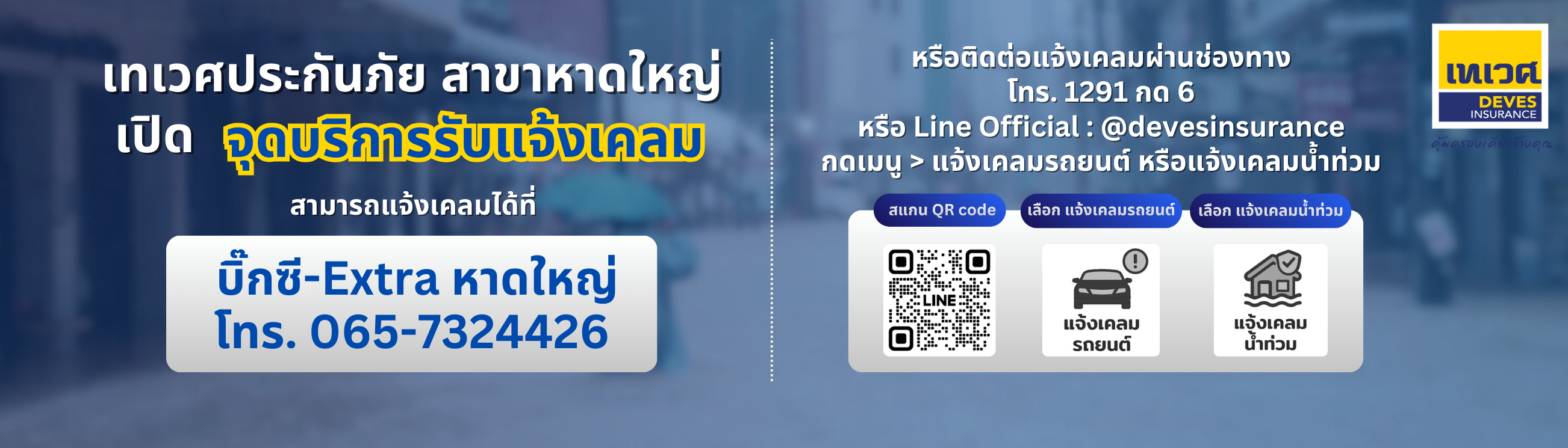 บริษัท เทเวศประกันภัย จำกัด (มหาชน) สาขาหาดใหญ่ แจ้งปิดสาขาชั่วคราว