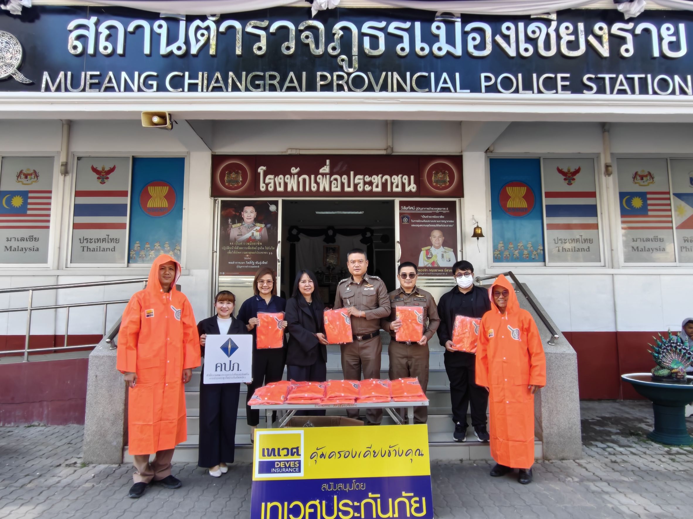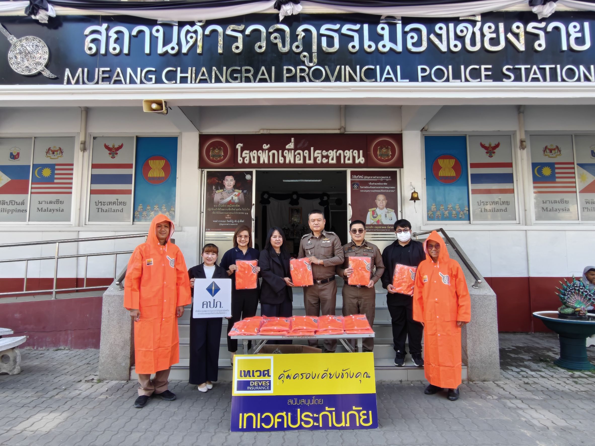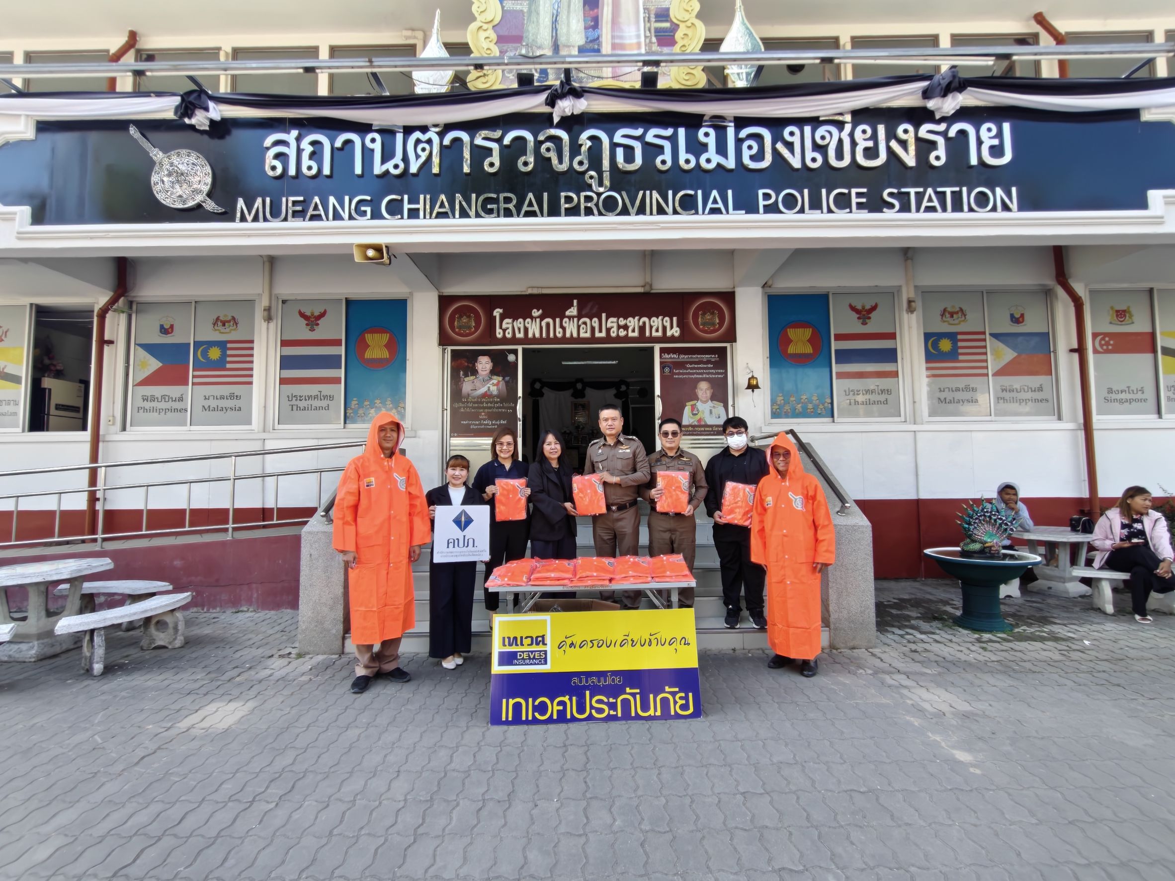 บริษัท เทเวศประกันภัย จำกัด (มหาชน) สาขาเชียงราย ร่วมกับ สำนักงานคณะกรรมการกำกับและส่งเสริมการประกอบธุรกิจประกันภัย (คปภ.) จังหวัดเชียงราย สนับสนุนเสื้อกันฝนสะท้อนแสง จำนวน 50 ตัว โดยคุณรวิษฎา ศรีวารี ผู้จัดการสาขาเชียงราย และคุณพรทิพย์ อินทวงศ์ ผู้อำนวยการ สำนักงานคณะกรรมการกำกับและส่งเสริมการประกอบธุรกิจประกันภัย (คปภ.) จังหวัดเชียงรายเป็นผู้มอบเพื่อความปลอดภัยของเจ้าหน้าที่ตำรวจในขณะปฏิบัติหน้าที่อำนวยความสะดวกและให้บริกาประชาชน ในพื้นที่ภาคสนามที่มีความเสี่ยงจากสภาพอากาศและการจราจร โดยมี พล.ต.ต.มานพ เสนากูล ผู้บังคับการตำรวจภูธรจังหวัดเชียงราย และ พ.ต.อ.ชลทฤษ ชัชวาลย์ รองผู้บังคับการตำรวจภูธรจังหวัดเชียงราย, พ.ต.อ.เกรียงศักดิ์ ตงศิริ ผู้กำกับการสถานีตำรวจภูธรเมืองเชียงราย พร้อมด้วย พ.ต.ท.เธียรัช กัลยา รองผู้กำกับการป้องกันปราบปรามสถานีตำรวจภูธรเมืองเชียงราย เป็นผู้รับมอบ