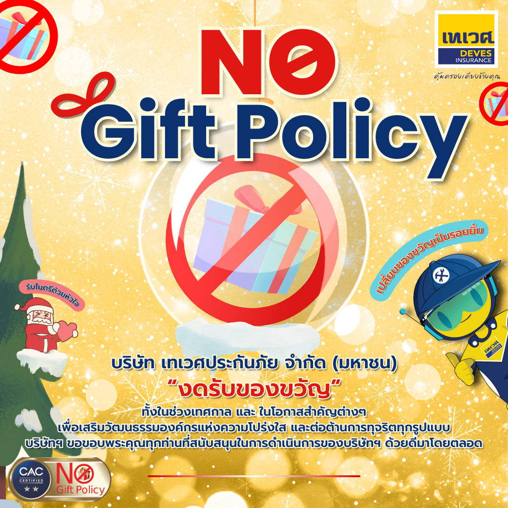 เทเวศประกันภัย ขอความร่วมมืองดการให้ของขวัญหรือของกำนัลแก่บุคลากรของบริษัทฯ เพื่อแสดงเจตนารมณ์และความมุ่งมั่นในการต่อต้านคอร์รัปชั่นทุกรูปแบบในการปฏิบัติหน้าที่ของบุคลากรทุกคน