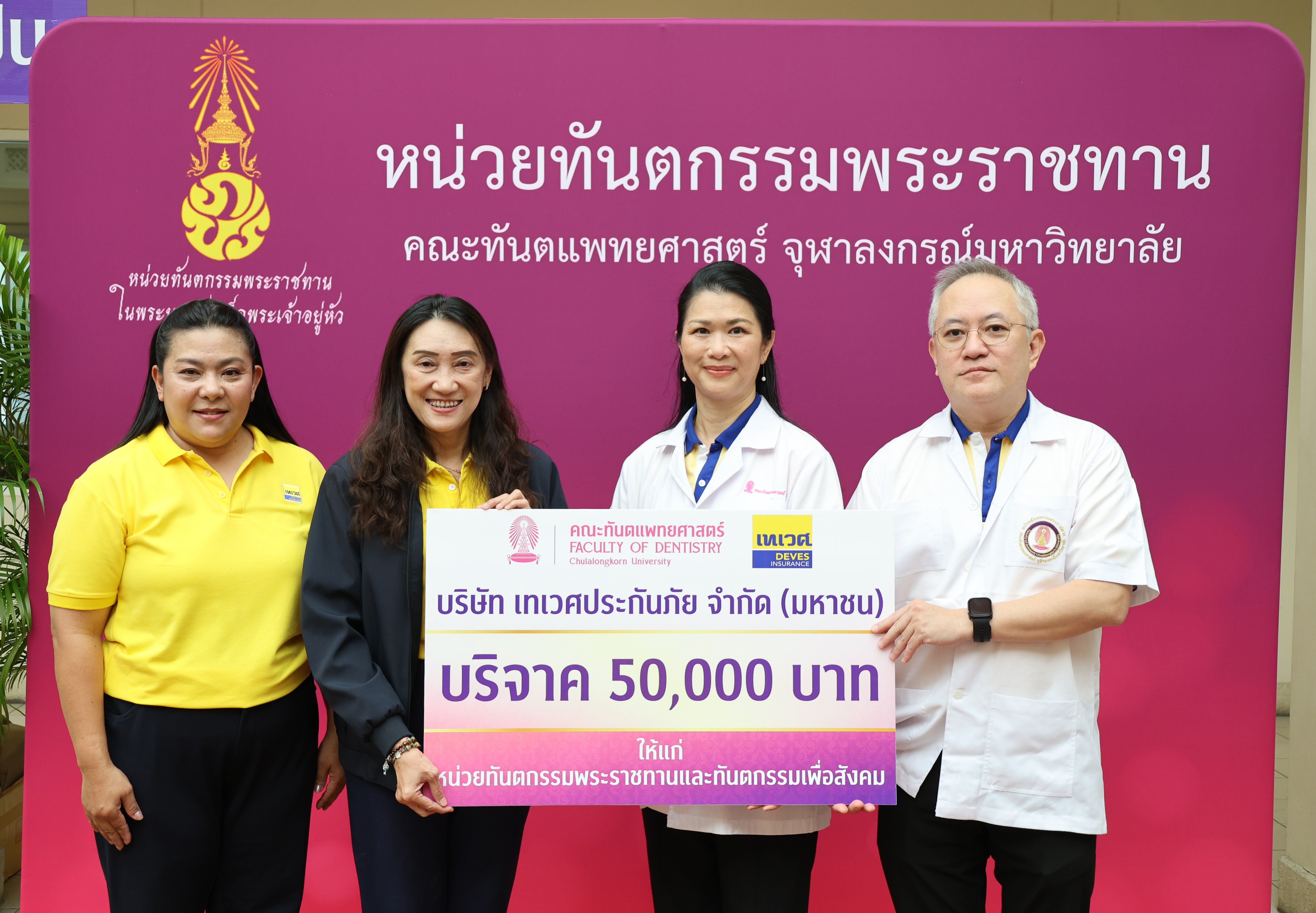 กิจกรรมในครั้งนี้ บริษัทฯ ได้นำ ผู้สูงวัย และนักเรียนจากโรงเรียนราชบพิธ เขตพระนคร กรุงเทพมหานคร เข้ารับบริการตรวจสุขภาพช่องปากจาก หน่วยทันตกรรมพระราชทานและทันตกรรมเพื่อสังคม คณะทันตแพทยศาสตร์ จุฬาลงกรณ์มหาวิทยาลัย ซึ่งจัดขึ้นร่วมกับ มูลนิธิสมเด็จพระมหิตลาธิเบศร อดุลยเดชวิกรม พระบรมราชชนก และบริษัท เทเวศประกันภัย จำกัด (มหาชน) โดยให้บริการทางทันตกรรมแก่ประชาชนทั่วไป อาทิเช่น ตรวจสุขภาพช่องปาก ถอนฟัน ผ่าฟันคุด ขูดหินปูน อุดฟัน จ่ายยา และให้ทันตสุขศึกษา และมอบเงินสนับสนุนจำนวน 50,000 บาท เพื่อใช้ในการดำเนินงานออกหน่วยทันตกรรมพระราชทานในครั้งนี้ด้วย (24 กันยายน 2568)